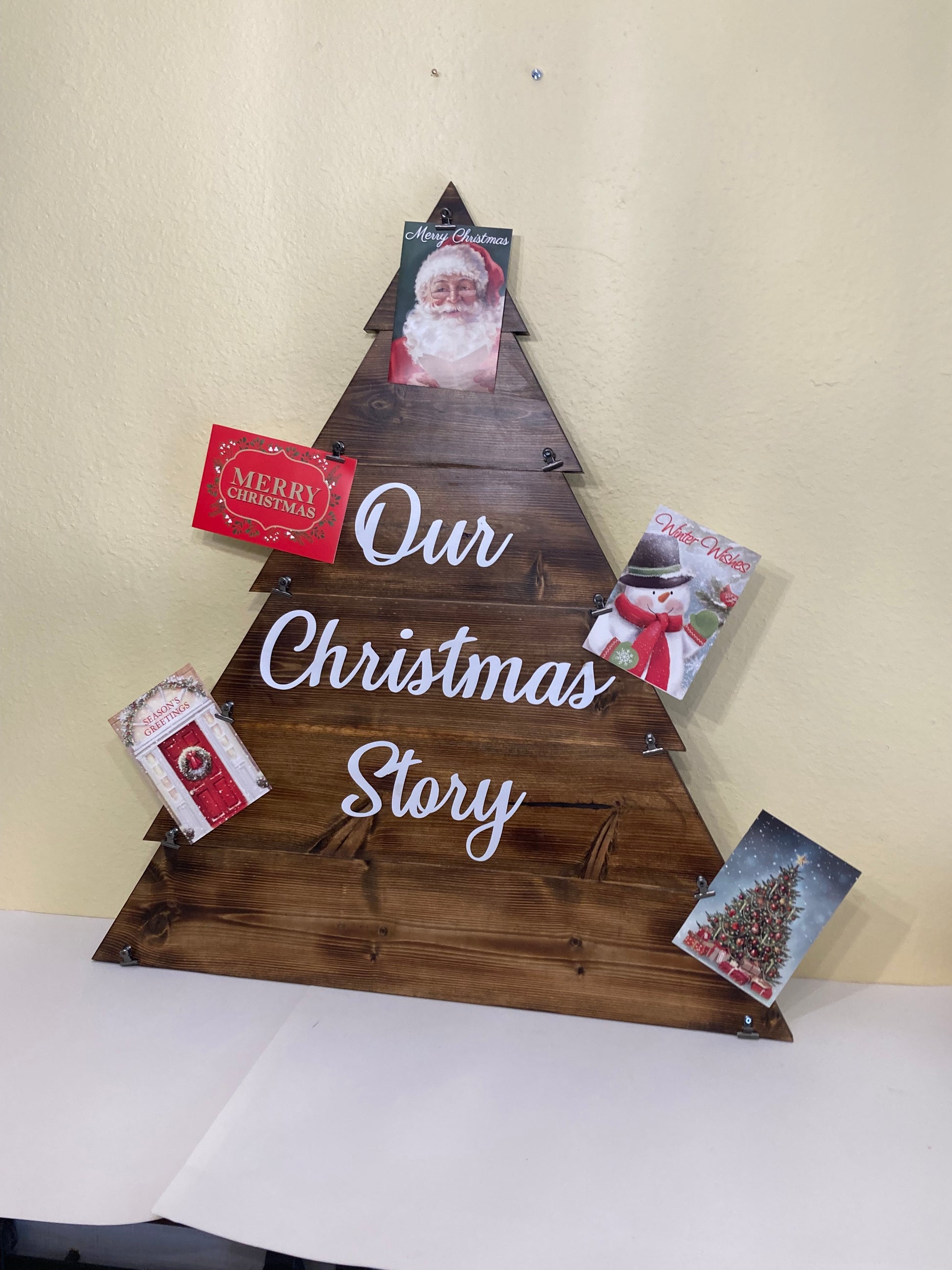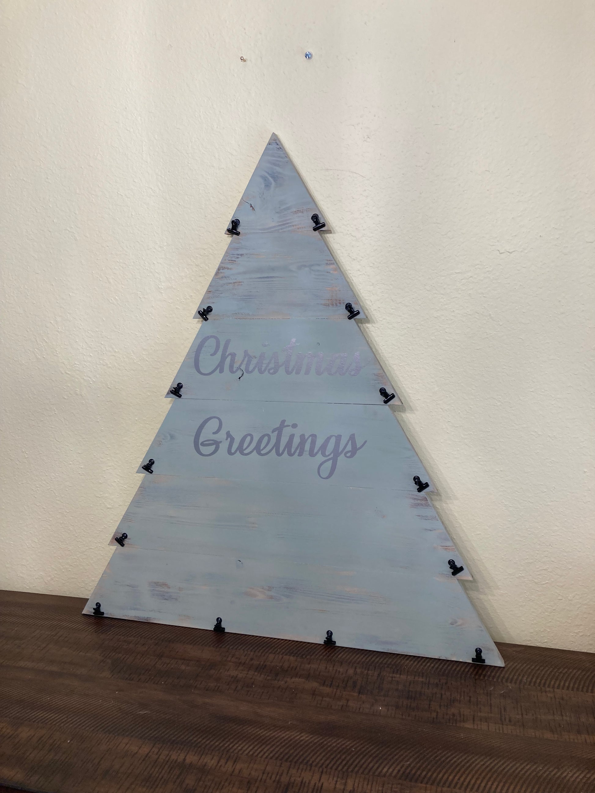 This large Christmas Tree will hold 14 cards or photos. Can be hung on the wall or placed on a table.